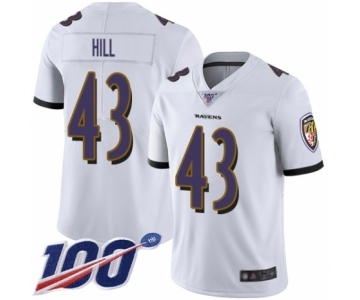 Youth Baltimore Ravens #43 Justice Hill White Vapor Untouchable Limited Player 100th Season Football Jersey