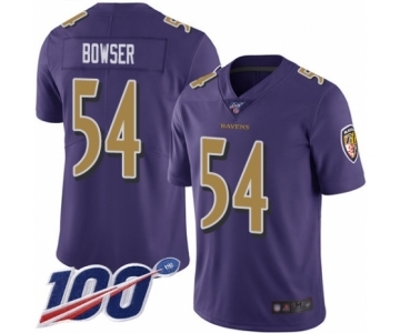 Youth Baltimore Ravens #54 Tyus Bowser Limited Purple Rush Vapor Untouchable 100th Season Football Jersey