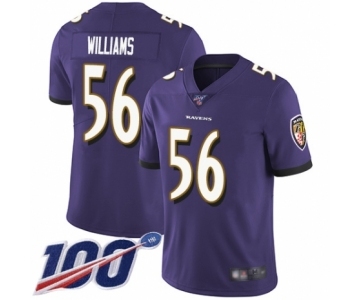 Youth Baltimore Ravens #56 Tim Williams Purple Team Color Vapor Untouchable Limited Player 100th Season Football Jersey