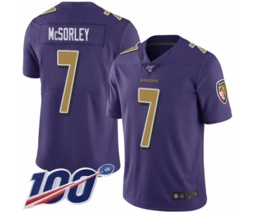 Youth Baltimore Ravens #7 Trace McSorley Limited Purple Rush Vapor Untouchable 100th Season Football Jersey