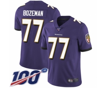Youth Baltimore Ravens #77 Bradley Bozeman Purple Team Color Vapor Untouchable Limited Player 100th Season Football Jersey
