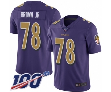 Youth Baltimore Ravens #78 Orlando Brown Jr. Limited Purple Rush Vapor Untouchable 100th Season Football Jersey