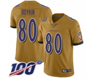 Youth Baltimore Ravens #80 Miles Boykin Limited Gold Inverted Legend 100th Season Football Jersey