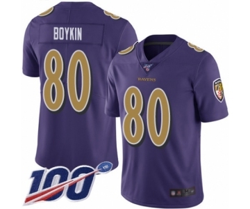 Youth Baltimore Ravens #80 Miles Boykin Limited Purple Rush Vapor Untouchable 100th Season Football Jersey
