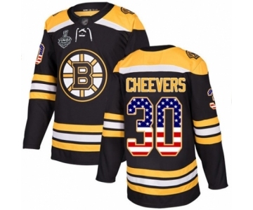 Youth Boston Bruins #30 Gerry Cheevers Authentic Black USA Flag Fashion 2019 Stanley Cup Final Bound Hockey Jersey