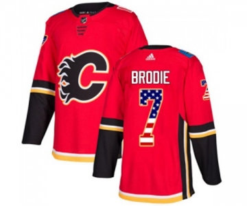 Youth Calgary Flames #7 TJ Brodie Authentic Red USA Flag Fashion Hockey Jersey