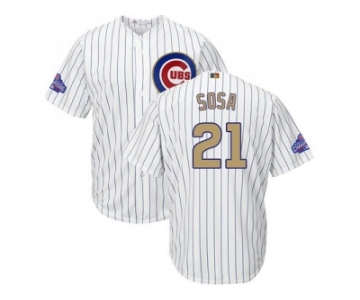 Youth Chicago Cubs #21 Sammy Sosa White(Blue Strip) 2017 Gold Program Cool Base StitchedMLB Jersey