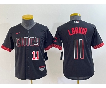 Youth Cincinnati Reds #11 Barry Larkin Black 2023 City Connect Cool Base Stitched Jersey
