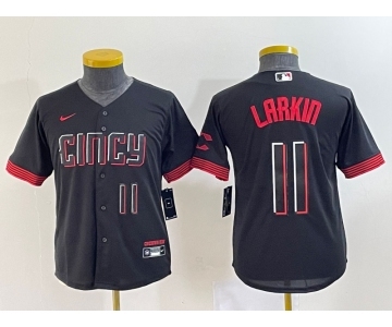 Youth Cincinnati Reds #11 Barry Larkin Number Black 2023 City Connect Cool Base Stitched Jersey2