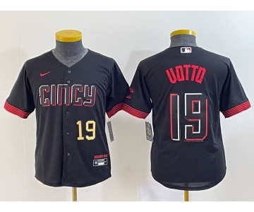 Youth Cincinnati Reds #19 Joey Votto Number Black 2023 City Connect Cool Base Stitched Jersey