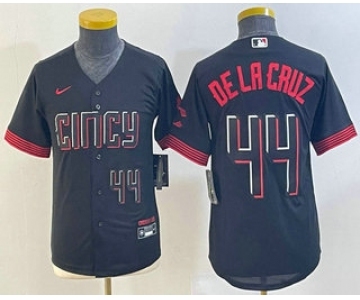 Youth Cincinnati Reds #44 Elly De La Cruz Number Black 2023 City Connect Cool Base Stitched Jersey