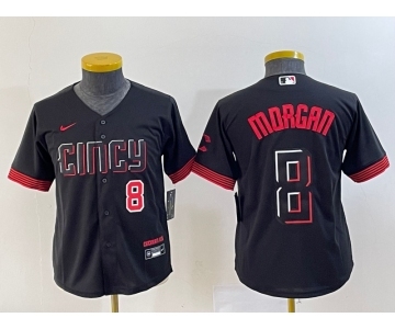 Youth Cincinnati Reds #8 Joe Morgan Black 2023 City Connect Cool Base Stitched Jersey