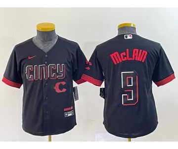 Youth Cincinnati Reds #9 Matt McLain Black 2023 City Connect Cool Base Stitched Jersey1