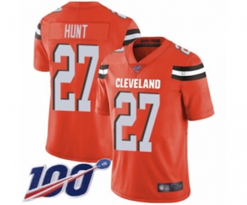 Youth Cleveland Browns #27 Kareem Hunt Orange Alternate Vapor Untouchable Limited Player 100th Season Football Jersey