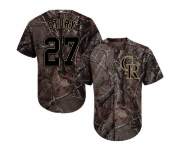 Youth Colorado Rockies #27 Trevor Story Camo Realtree Collection Cool Base Stitched MLB Jersey