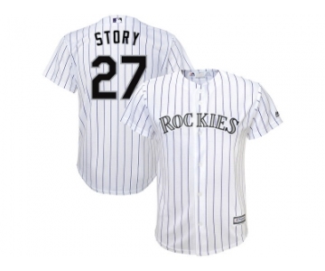 Youth Colorado Rockies #27 Trevor Story Majestic White Home Cool Base Player Jersey