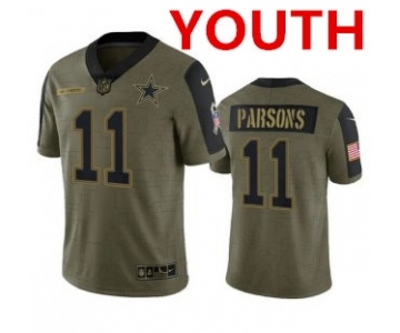 Youth Dallas Cowboys #11 Micah Parsons Olive 2021 Salute To Service Limited Stitched Jersey