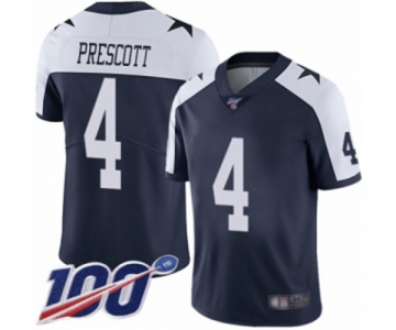 Youth Dallas Cowboys #4 Dak Prescott Navy Blue Throwback Alternate Vapor Untouchable Limited Player 100th Season Football Jersey