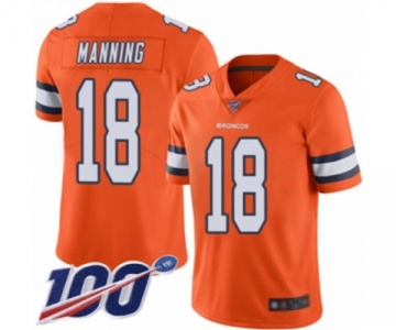 Youth Denver Broncos #18 Peyton Manning Limited Orange Rush Vapor Untouchable 100th Season Football Jersey