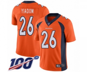 Your Position: Home>NIKE NFL Jerseys>Nike Denver Broncos>nike youth>Youth Denver Broncos #26 Isaac Yiadom Orange Team Color Vapor Untouchable Limited Player 100th Season Football Jersey