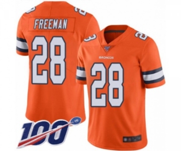 Youth Denver Broncos #28 Royce Freeman Limited Orange Rush Vapor Untouchable 100th Season Football Jersey