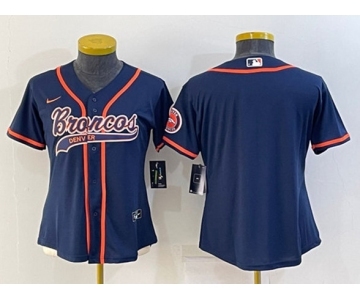 Youth Denver Broncos Blank Navy With Patch Cool Base Stitched Baseball Jersey