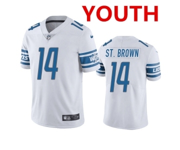 Youth Detroit Lions #14 mon-Ra St. Brown White Vapor Untouchable Limited Stitched Jersey
