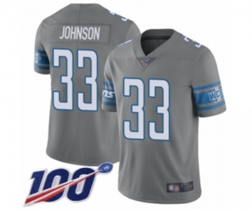 Your Position: Home>NIKE NFL Jerseys>Nike Detroit Lions>Nike Youth>Youth Detroit Lions #33 Kerryon Johnson Limited Steel Rush Vapor Untouchable 100th Season Football Jersey