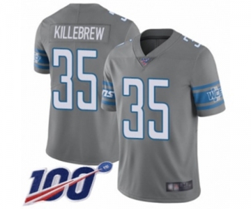 Your Position: Home>NIKE NFL Jerseys>Nike Detroit Lions>Nike Youth>Youth Detroit Lions #35 Miles Killebrew Limited Steel Rush Vapor Untouchable 100th Season Football Jersey