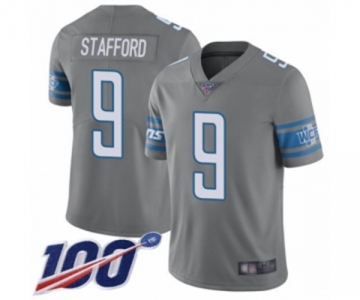 Youth Detroit Lions #9 Matthew Stafford Limited Steel Rush Vapor Untouchable 100th Season Football Jersey