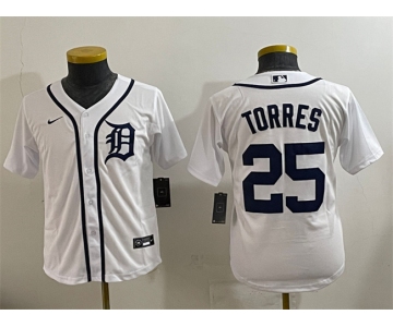 Youth Detroit Tigers #25 Gleyber Torres White Cool Base Stitched Baseball Jersey