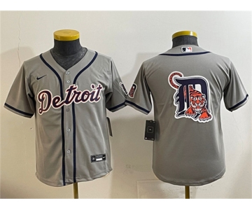 Youth Detroit Tigers Team Big Logo Gray Cool Base Stitched Baseball Jersey