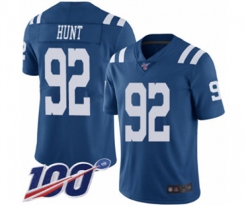 Youth Indianapolis Colts #92 Margus Hunt Limited Royal Blue Rush Vapor Untouchable 100th Season Football Jersey