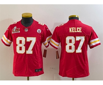 Youth Kansas City Chiefs #87 Travis Kelce Red 2025 Super Bowl LIX Patch F.U.S.E. Vapor Untouchable Limited Stitched Football Jersey