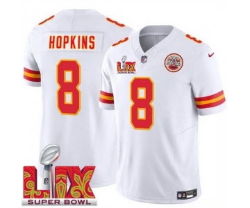 Youth Kansas City Chiefs DeAndre Hopkins #8 White 2024-2025 Super Bowl LIX F U S E Stitched Jersey