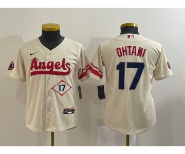 Youth Los Angeles Angels #17 Shohei Ohtani Cream 2022 City Connect Cool Base Stitched Jersey