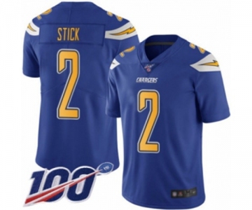 Youth Los Angeles Chargers #2 Easton Stick Limited Electric Blue Rush Vapor Untouchable 100th Season Football Jersey