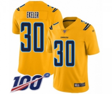 Youth Los Angeles Chargers #30 Austin Ekeler Limited Gold Inverted Legend 100th Season Football Jersey