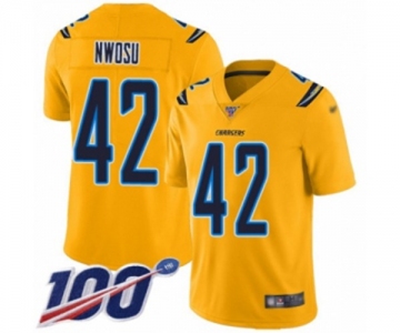 Youth Los Angeles Chargers #42 Uchenna Nwosu Limited Gold Inverted Legend 100th Season Football Jersey