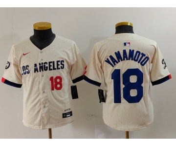 Youth Los Angeles Dodgers #18 Yoshinobu Yamamoto Cream 2024 City Connect Limited Jersey