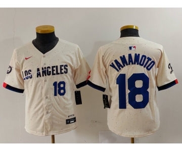 Youth Los Angeles Dodgers #18 Yoshinobu Yamamoto Number Cream 2024 City Connect Limited Stitched Jerseys