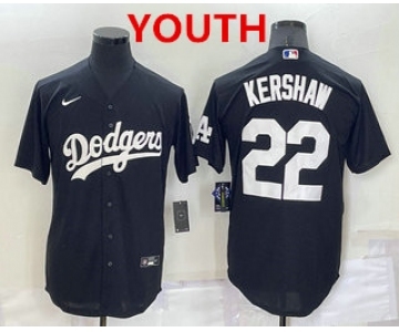 Youth Los Angeles Dodgers #22 Clayton Kershaw Black Turn Back The Clock Stitched Cool Base Jersey