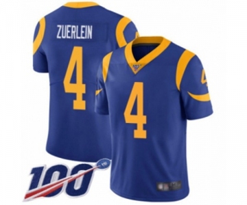 Youth Los Angeles Rams #4 Greg Zuerlein Royal Blue Alternate Vapor Untouchable Limited Player 100th Season Football Jersey