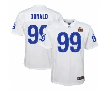 Youth Los Angeles Rams #99 Aaron Donald White Nike Royal Super Bowl LVI Patch Jersey