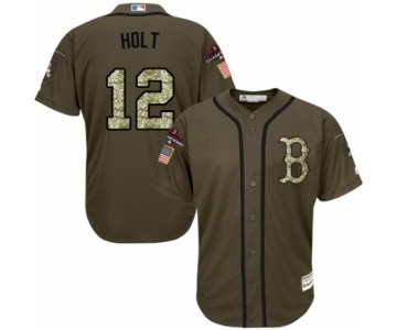 Youth Majestic Boston Red Sox #12 Brock Holt Authentic Green Salute to Service 2018 World Series Champions MLB Jersey