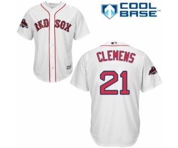 Youth Majestic Boston Red Sox #21 Roger Clemens Authentic White Home Cool Base 2018 World Series Champions MLB Jersey