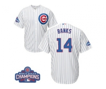 Your Position: Home>MLB Jerseys>Chicago Cubs>youth>Youth Majestic Chicago Cubs #14 Ernie Banks Authentic White Home 2016 World Series Champions Cool Base MLB Jersey