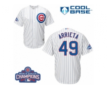 Your Position: Home>MLB Jerseys>Chicago Cubs>youth>Youth Majestic Chicago Cubs #49 Jake Arrieta Authentic White Home 2016 World Series Champions Cool Base MLB Jersey