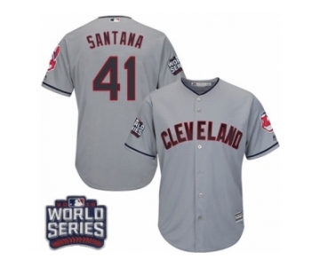Youth Majestic Cleveland Indians #41 Carlos Santana Authentic Grey Road 2016 World Series Bound Cool Base MLB Jersey