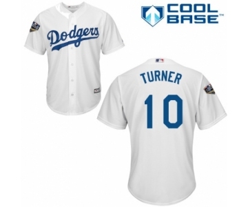 Youth Majestic Los Angeles Dodgers #10 Justin Turner Authentic White Home Cool Base 2018 World Series MLB Jersey